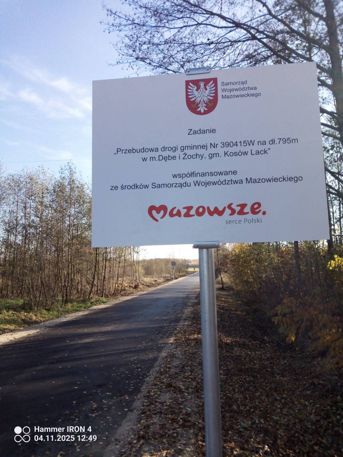 Kolejny odcinek drogi w gminie przebudowany z dofinansowaniem ze środków Samorządu Województwa Mazowieckiego
